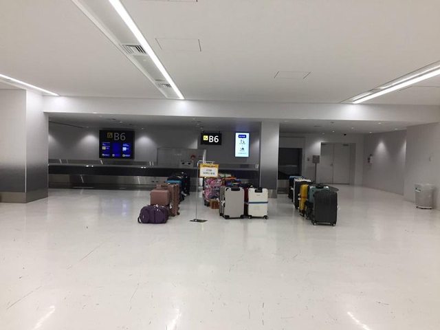 因為入境大排長龍,所以行李都被拿下來堆在旁邊了囧