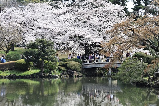 橋上都是人的新宿御苑