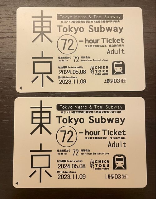東京地鐵三日券(2張)