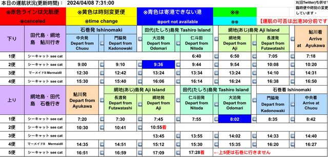 渡輪公司的推特帳號,上面每天更新風浪與航班狀況