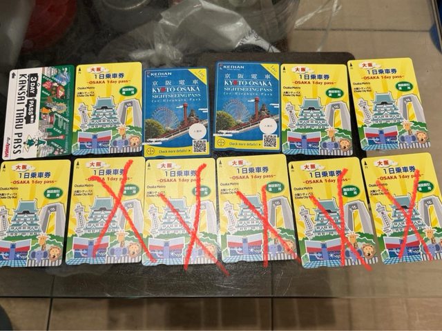 關西周遊卡三日券ktp 購入$1350 1350/3=$450