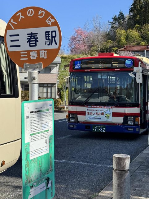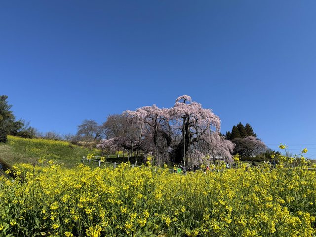 原訂昨天去三春瀧櫻,因為大雨而順延到今天。今天很幸運碰到晴空萬里無雲的日子,賞