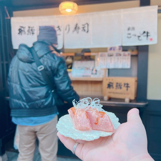大排長龍的飛驒牛壽司(排40分鐘…),吃完走回去集合地點差不多