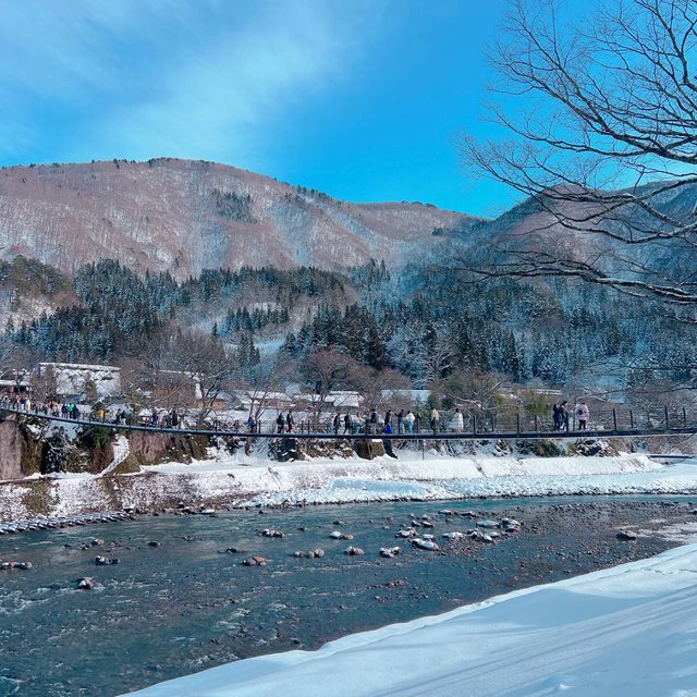 過橋後就是合掌部落了,橋面真的很滑,在上面看了好幾個差點滑倒的,大家幾乎都是用 踮著走