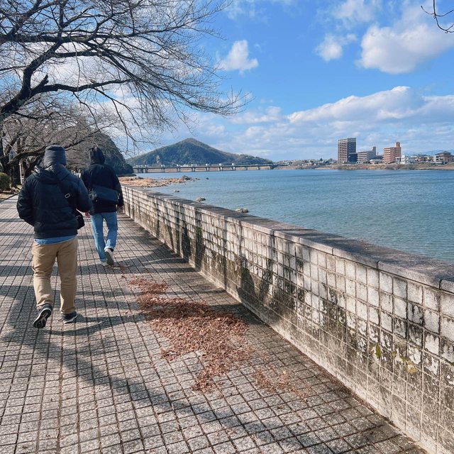 出犬山遊園站後沿著岸邊慢慢走過去,很愜意