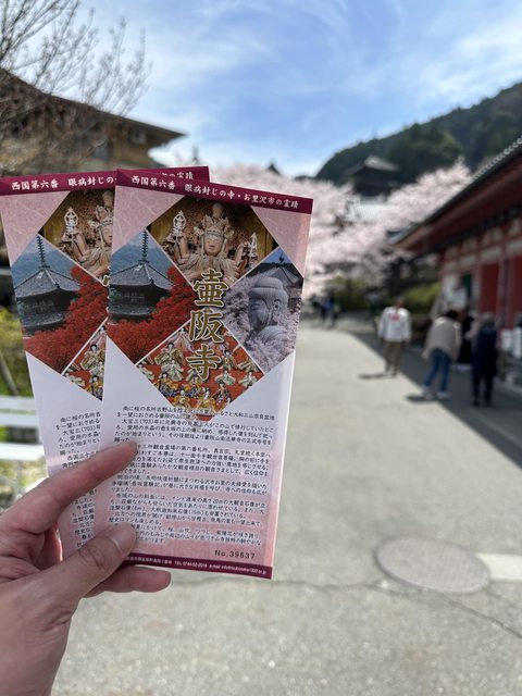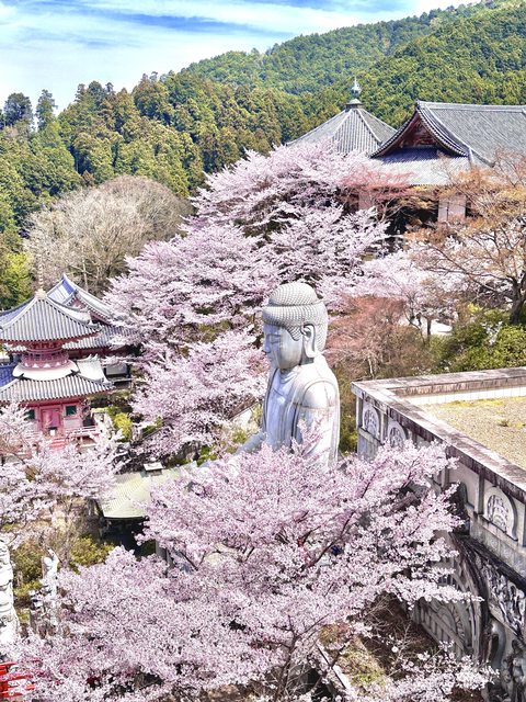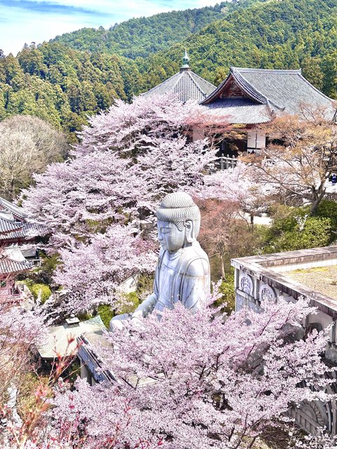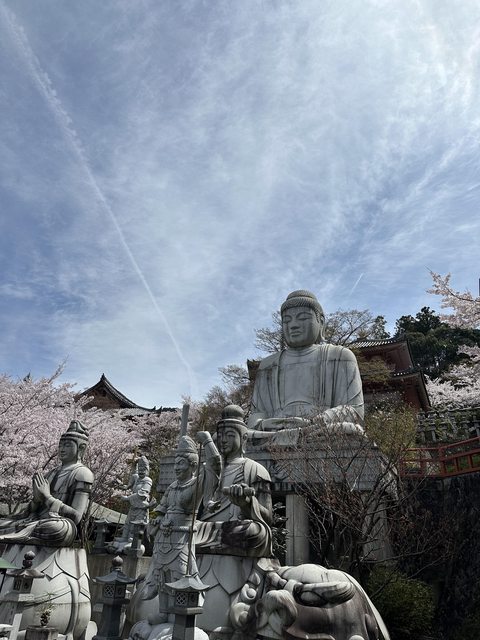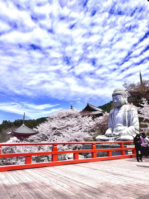 超美! 很多人在這個平台跟大佛合照,旁邊有在賣御守、郵票等紀念品,壺阪寺是祈禱抑