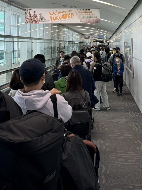 從下機、排隊入境審查,到提行李入境,總共花了約100分鐘