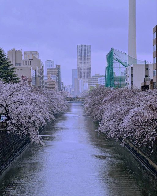 三月底水上還在冬天,東京卻已滿開的目黑川,但下雨