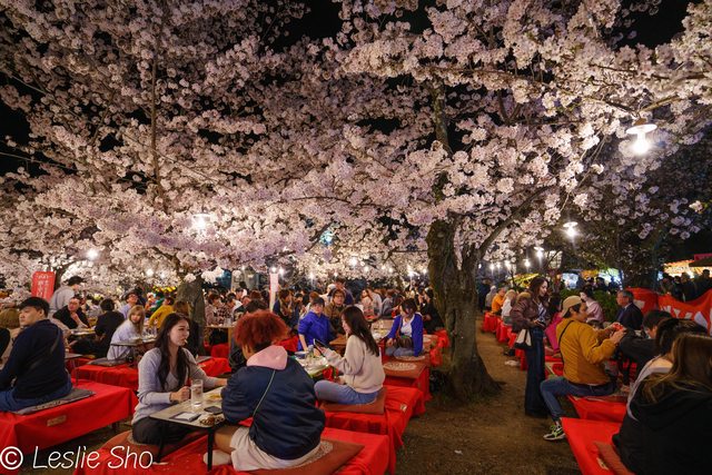 一群又一群的日本人在櫻花樹下搭建的客席飲酒作樂,好像世俗的煩惱都可以拋在腦後