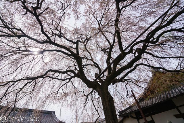 即使如此由下往上拍這棵巨大枝垂櫻仍是壯觀