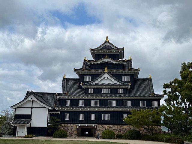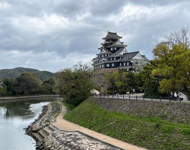 吃飽飯後,慢慢散步走去岡山城(約30分),14:20抵達烏城公園。這座由宇喜多秀家於1