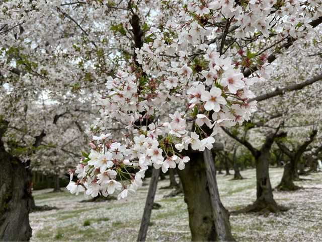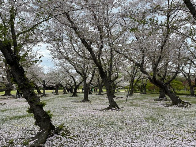 15:50經由月見橋往後樂園前進,先到櫻林,在微風吹拂下帶點吹雪,吸引許多遊客佇足