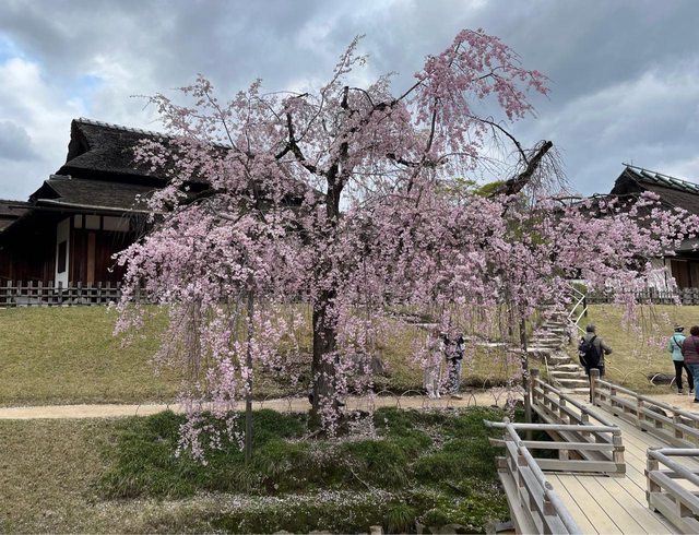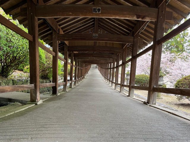 從主殿延伸出來的迴廊長達360公尺,迴廊旁的櫻花也正恣意綻放。
