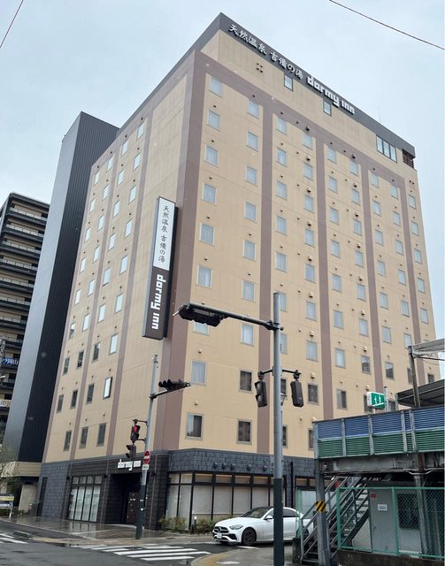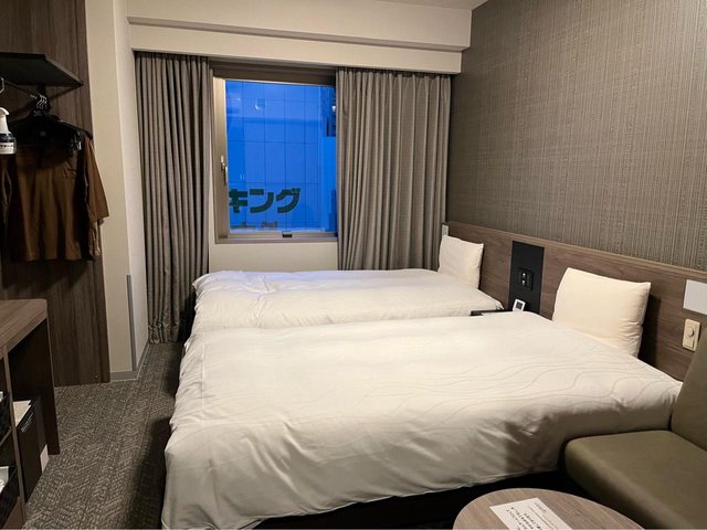 走到今晚住宿的飯店-Dormy inn岡山約10分鐘。訂雙床房型,連泊兩晚、不含餐共24,480