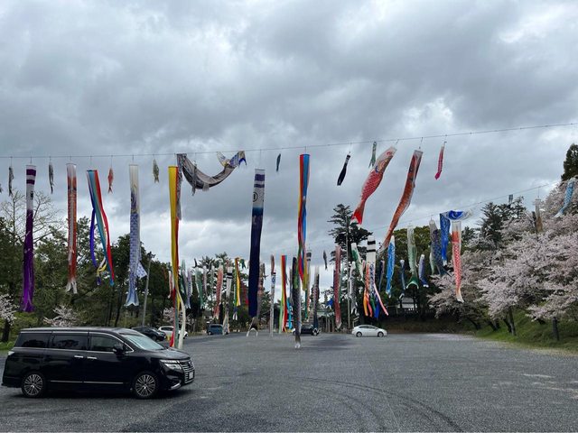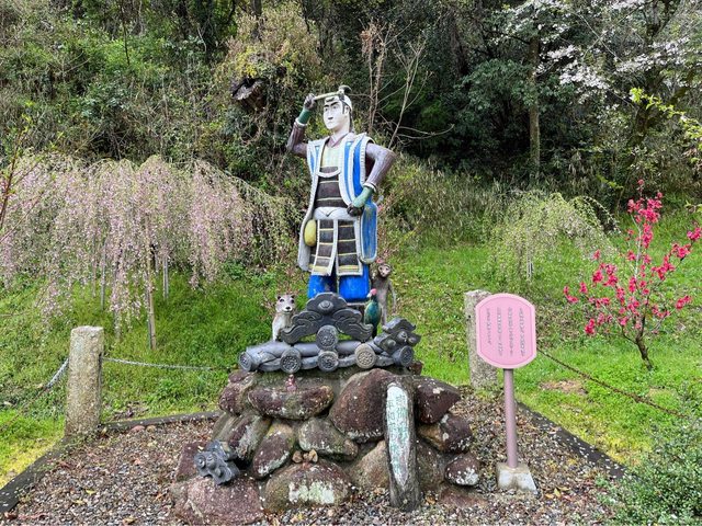 從這邊進去先到停車場,一大片鯉魚旗甚是壯觀,旁邊則有桃太郎的雕像。
