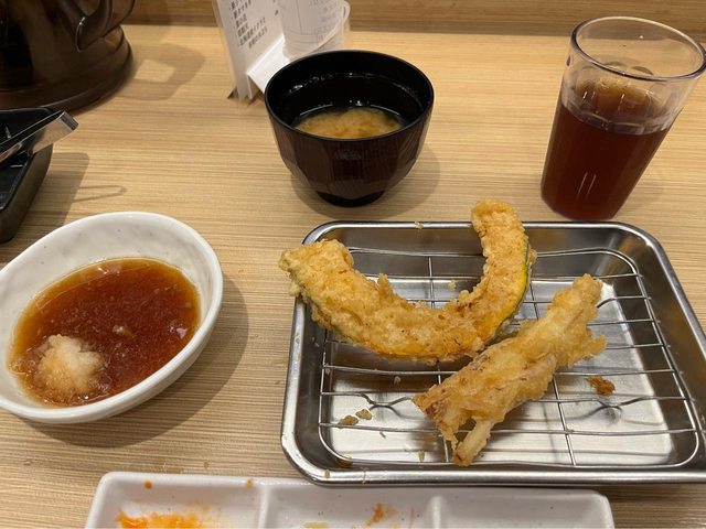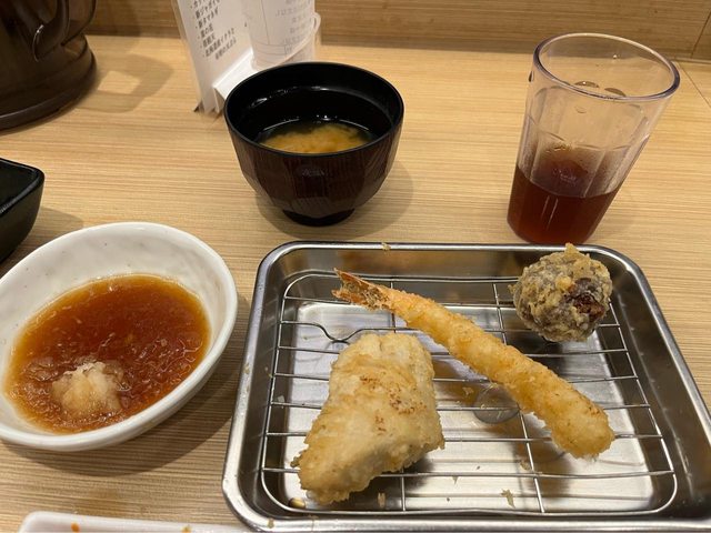餐廳,選了天婦羅定食(1,300円)及岡山店限定的岡山天定食(1,800円)。餐點是炸完