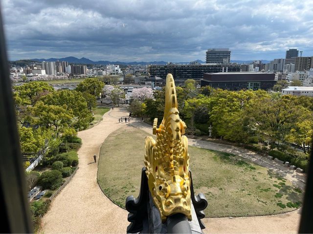 購買天守閣+後樂園的門票(640円)。登上天守閣眺望岡山市區風光。