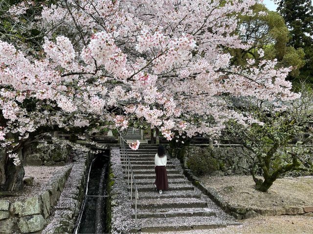 10:45往吉備津彥神社前進,小路旁的櫻花也是讓我們花了不少時間拍照,約半小時才到