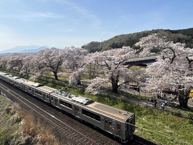 然後在櫻花樹下坐了一下、吃個東西感受氣氛後回到大河原站,