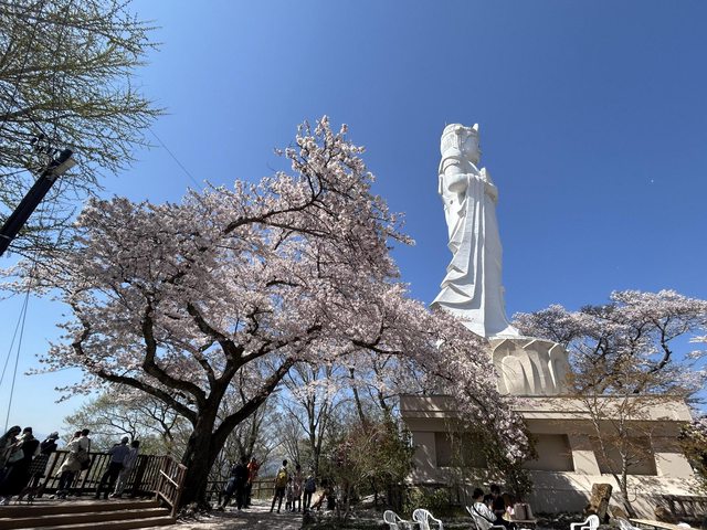 船岡城址公園,先搭スロープカー到山頂看船岡平和観音像,再搭下山去三ノ丸廣場