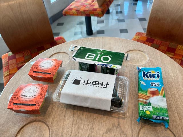 這趟航程約70分鐘,不過船上的餐飲部沒有營業;我們有在岡山駅買山田村的飯糰及昨天