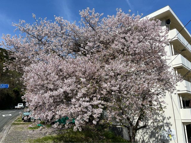 14:35,在天狗岩丁場旁的路邊,一整片櫻花襯著藍天,很是舒心。