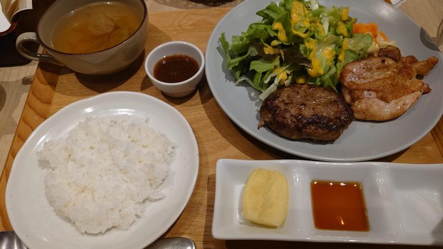 可是我最後沒有點牛排,而是點了自家製漢堡排+岡山縣產森林雞的檸檬香草雞排,