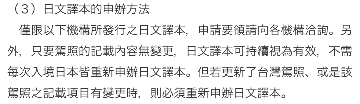 A:駕駛人從入境日本當日起一年內都適用 By台日交流協會公告
