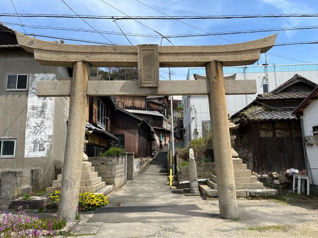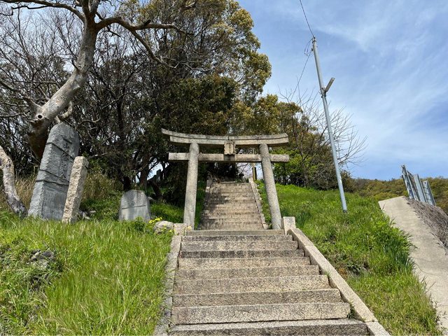 我們決定先去豐玉姬神社,從港邊的鳥居出發,與石階奮戰約6分鐘抵達。