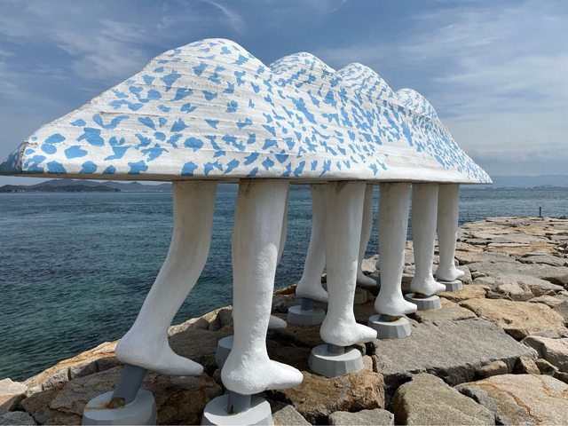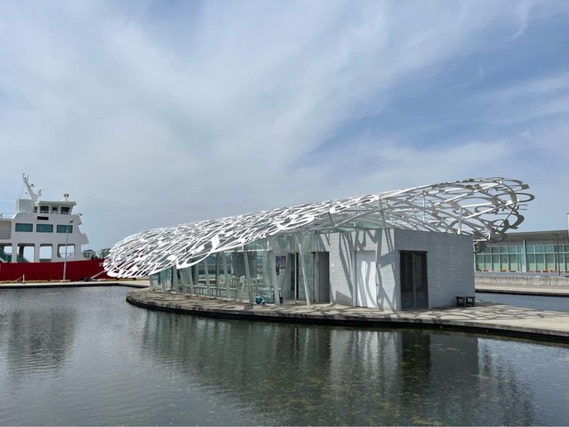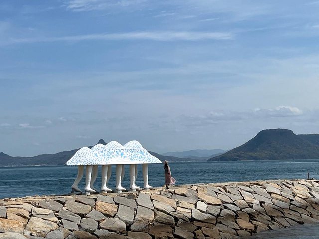 一下船就看到也是藝術作品的交流館-男木島の魂,以半透明的空間歡迎遊客來到島上。