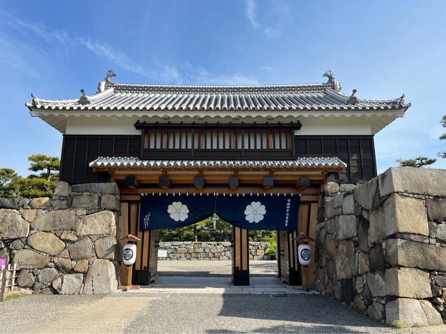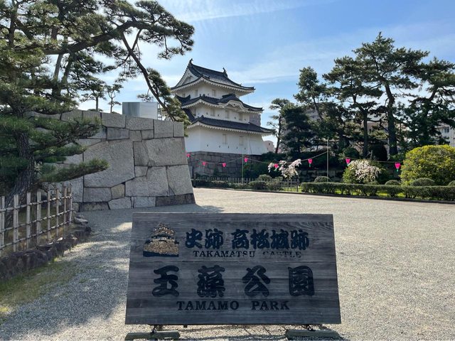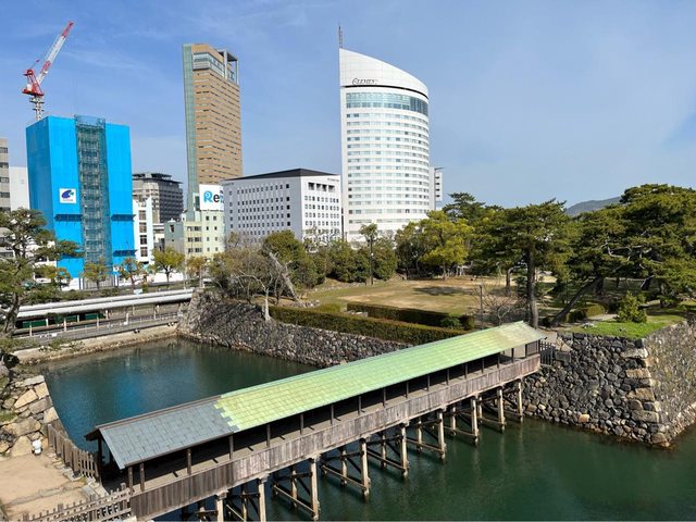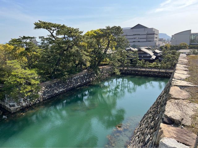 先登上高松城天守台跡,海水護城河的顏色蠻漂亮的;也可乘坐木造船(玉藻丸)遊覽、