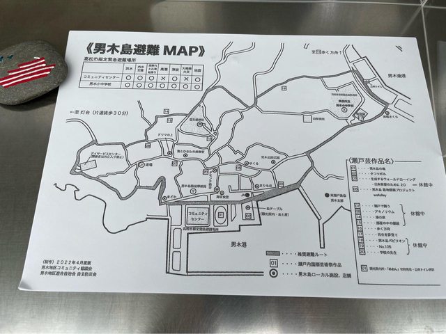 只有留告示表示可以在那休息。我們便拿出背包內的餅乾及咖啡,並欣賞男木島及瀨戶內