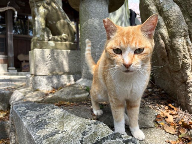 男木島也是知名的貓島,看到有人在餵貓。