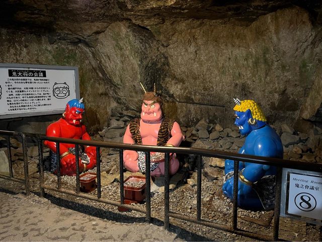 太郎傳說的鬼之巢穴有所連結而得名。下船後進入鬼の館可以買巴士票(單程500円、來