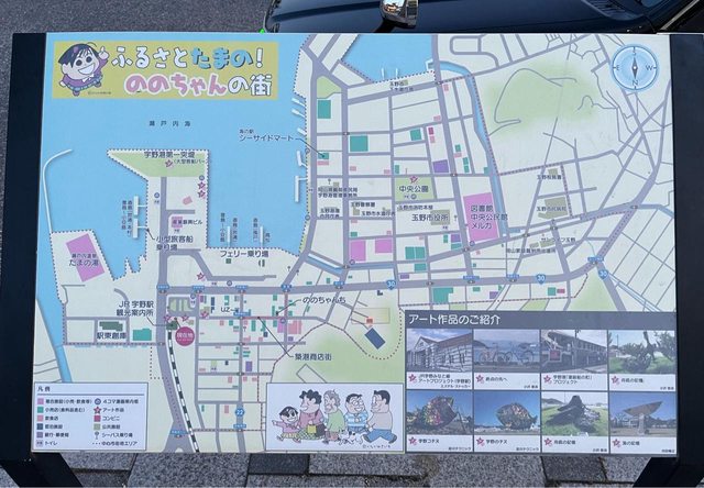 搭14:55的船前往宇野(300円),約20分鐘即抵達。宇野駅的外牆也挺藝術的。