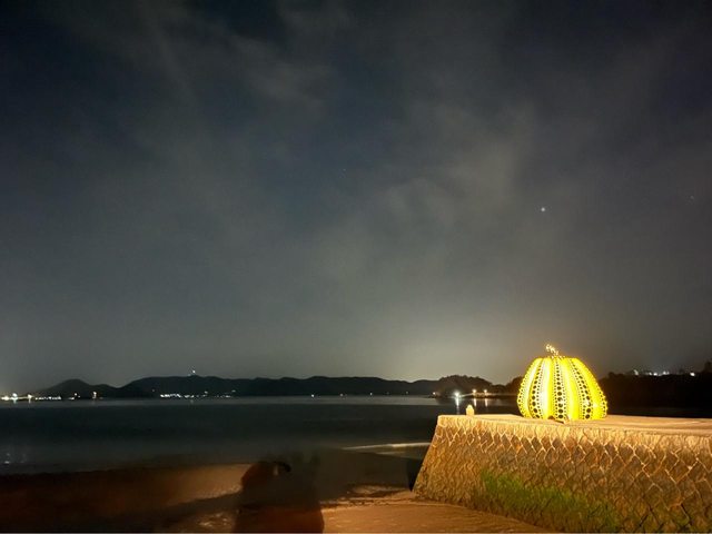回飯店吃飽後,再到岸邊走走。這時的黃南瓜,人潮已不像白天般洶湧,可以靜靜欣賞; 這也是住在島上的優點呀。