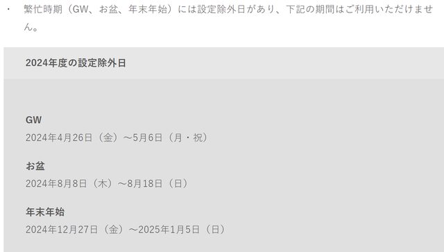 1.有排除期間,日文版網頁有特別標示,英文版則沒有特別標示