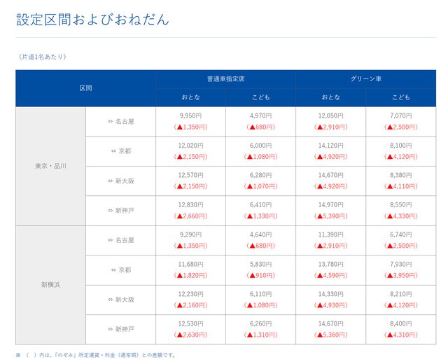 2.主要區間為東京至新大阪,最遠到博多,但起終點至少有一個是JR東海的新幹線站