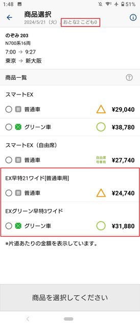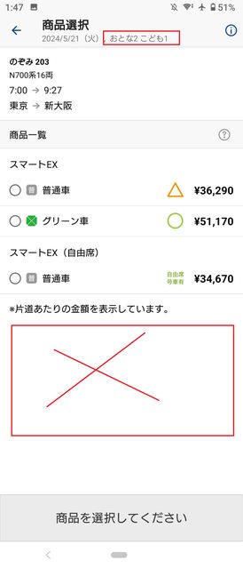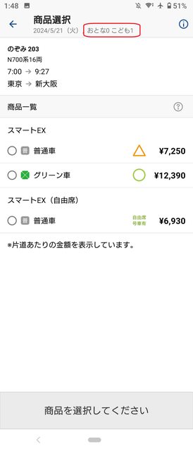 (1)設定2大1小,東京-新大阪,5月21日出發