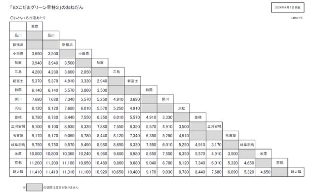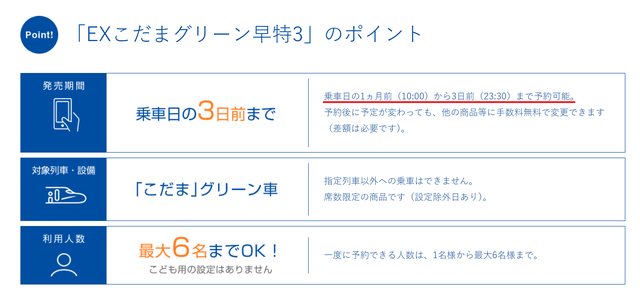 「EXこだまグリーン早特3」發售期間是乘車日前1個月到前3天、不適用小孩、