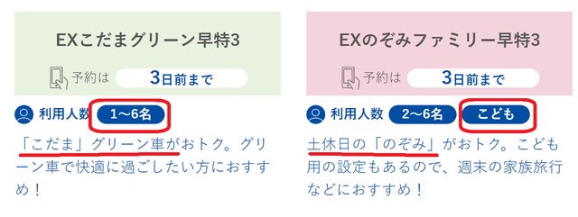 (一)例1-「EXこだまグリーン早特3」和「EXのぞみファミリー早特3」