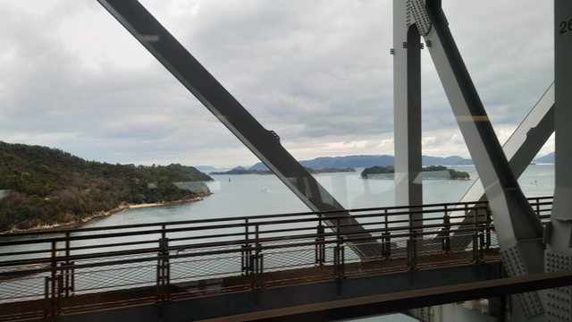 MARINE LINER會從岡山經過瀨戶大橋到四國,瀨戶大橋是由10座橋樑構成,
