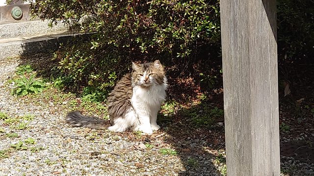 循著原路走下階梯,可能是天氣變晴朗了,沿路看到兩三隻野貓出來散散步,