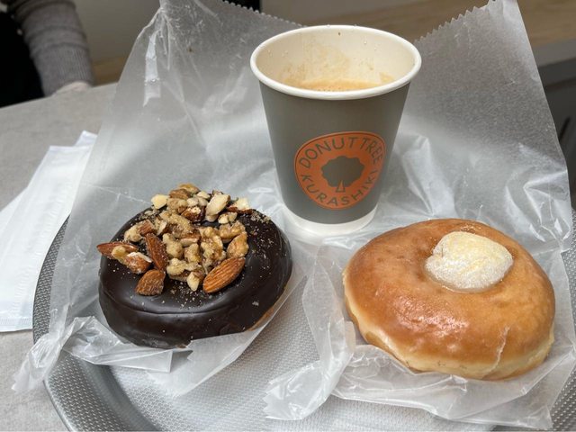 順著階梯下山,倉敷公民館對面的甜甜圈店似乎新開幕,我們也嚐鮮一下。甜甜圈還蠻好