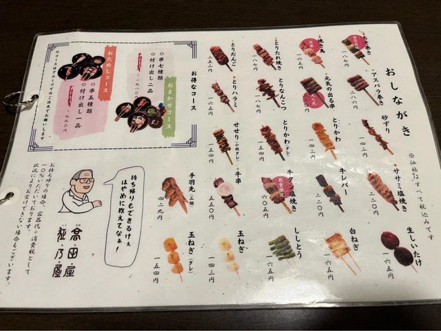 點了menu上的推薦組合餐(兩人要點一樣的組合,共1,980*2=3,960円再加酒錢),每串