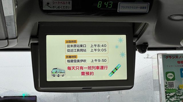 江八幡)等景點,晚上住在米原車站附近。米原車站東口有接駁巴士(需預約)前往滑雪