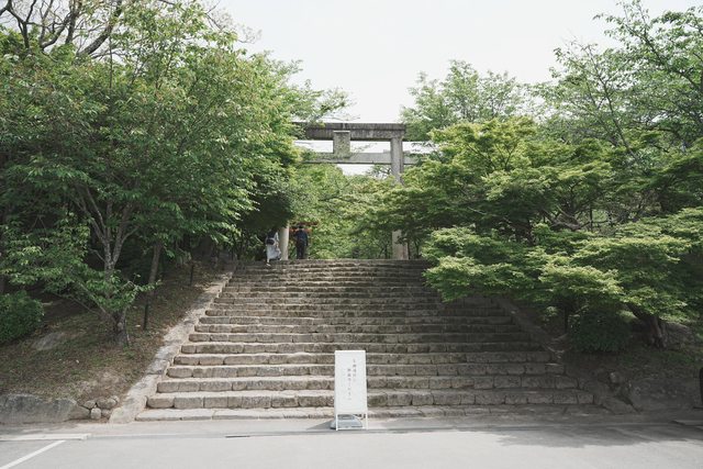 過了鳥居,還要爬一段階梯才會到竈門神社