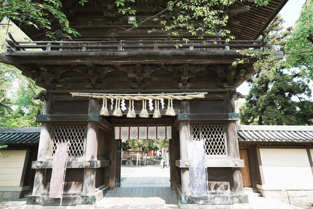 接著,轉乘百元巴士「まほろば号」,同樣站到終點站內山,一下車便能看到竈門神社的