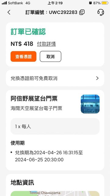 標題[讓售] Harukas 阿倍野門票