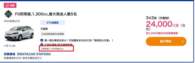 標題[問題] 租車 tabirai ORIX 車種 SA SA_CP 差異